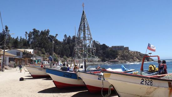 wo Weihnachtsbaum und Fischerboote friedlich nebeneinander liegen. In Vina del Mar, das manchen der europäischen Touristenburgen als Vorbild für eine sanfte Bebauung dienen könnte,