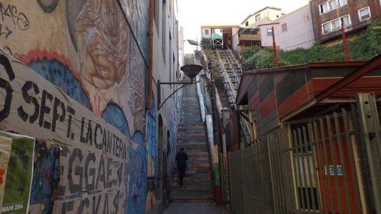 bevor wir die letzten km für heute bis Valparaíso zurücklegen. Dank I-Overlander finden wir hier einen sicheren, stadtnahen Stellplatz und machen uns dann auch gleich an die Stadtbesichtigung. Steile Treppen hoch um die Stadt von oben zu bewundern,