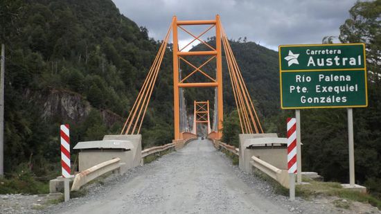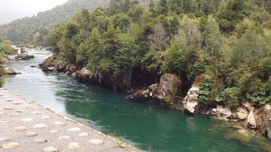 erreichen wir die Carretera Austral, gelegentlich auch nur Hwy 7 genannt. Diese gut 1200km lange Strasse wurde einst unter Pinochet vom Militär gebaut um Patagonien, den Süden Chiles bis runter nach Villa O'Higgins an Puerto Montt anzuschliessen. Einst eine schmale, ruppige Schotterpiste, wird sie derzeit ausgebaut, so 20km- stückchenweise den modernen Verkehrsbedürfnissen angepasst. So zeigt sie heute ein sehr vielfältiges Gesicht, jeweils ihrem Ausbauzustand entsprechend fanden wir moderne, teils aber einspurige Brücken