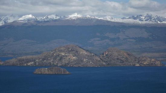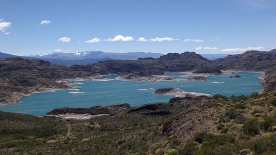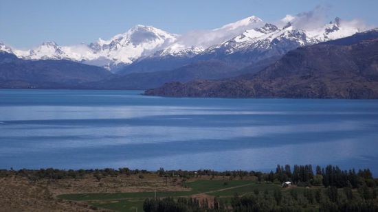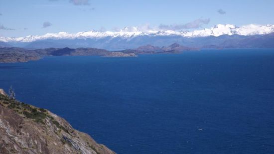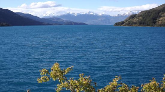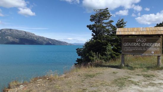 der in Argentinien als fast gleich grosser Lago Buenos Aires seine Fortsetzung findet und so insgesamt eine Wasserfläche von über 1800 qkm besitztund damit nach dem Titicacasee der zweitgrößte See Südamerikas ist. Wir fahren nun immer diesen See entlang, erst einmal Richtung Süden, begleitet von zahlreichen Gletschern im Hintergrund,