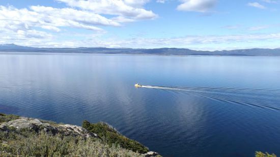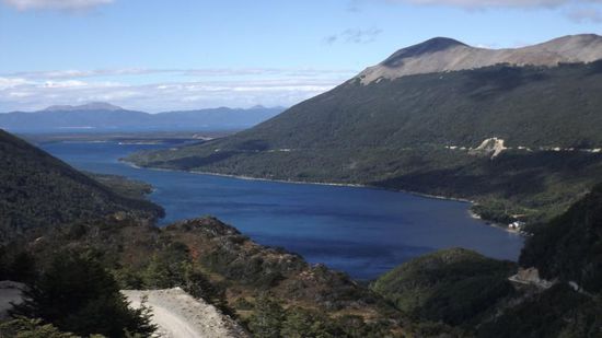 Wir machen am Mirador vom Lago Fagnano eine kurze Pause, freuen uns über die Windstille, das spiegelglatte Wasser.