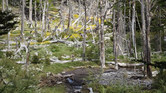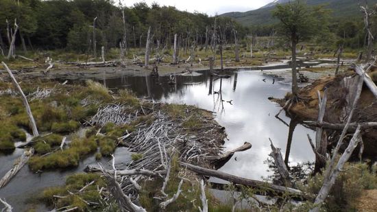 Ein weiteres Beispiel von 'die Geister die ich rief''. Einst wurden hier 25 kanadische Bieberpärchen zur Fellgewinnung ausgesetzt, die sich ohne natürliche Feinde ungestört vermehren konnten, mit ihren Dämmen ganze Landstriche unter Wasser setzten, Wälder zum Absterben brachten,...