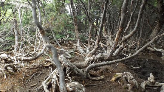 stossen auf etwa 300m bereits auf diese von Wind und Schnee verkrüppelten Bäume,