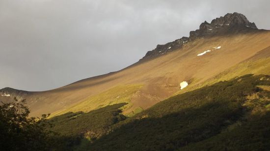 Zurück an unserem Stellplatz nochmals ein Blick hoch auf den Cerro Guanaco, den wir gestern erwandert haben.