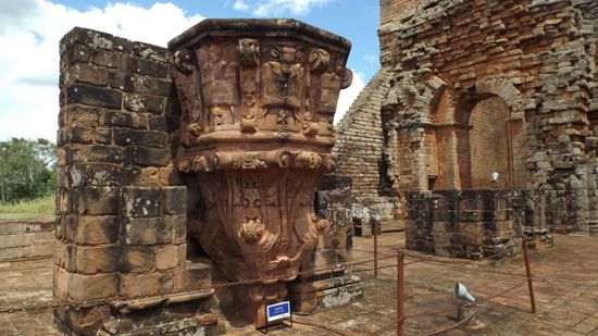 und fahren dann Richtung Nord-Osten um dort einige der 7 Paraguayanischen Jesuiten Reduktionen zu besichtigen. Wir beginnen in Misiones Trinidad (E=PYG 25.000 pP), Unesco Weltkulturerbe exzellent renoviert