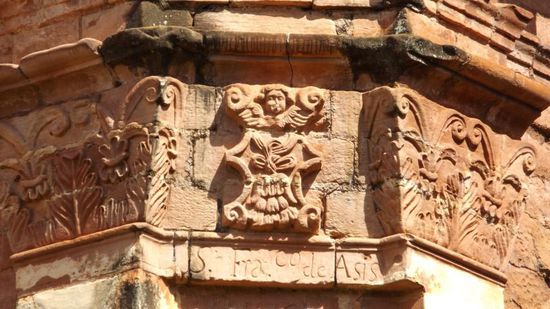 Barocke Guarani Holzschnitzereien in absoluter Vollendung, geschnitzte Säulen, bemalte Deckenbalken,