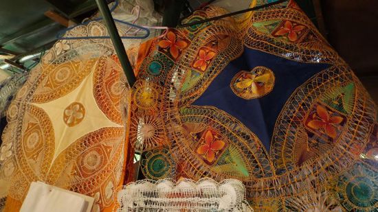 doch das Warenangebot erscheint ‚beschränkt‘. Da wir haben gestern im Gewittersturm bei der Einfahrt einige moderne Shopping Malls gesehen haben, liegt die Vermutung nahe, dass sich das Einkaufsverhalten hier analog zu anderen Großstädten an die Peripherie verschoben hat. An der Plaza de los Heroes ein Kunsthandwerkermarkt in dem uns vor allem diese filigranen Nanduti Webarbeiten beeindrucken,