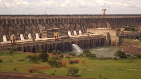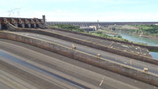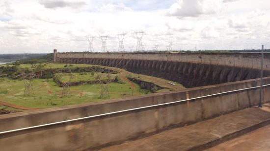 Am nächsten Morgen nochmals 80km Richtung Osten und dann auf dem neuen Super Highway Richtung Norden bis zum Besucherzentrum vom Itaipu Damm, in den 70er Jahren erbaut, damals das weltweit größte Dammprojekt, mittlerweile vom Yangtse Damm in China, den wir vor zwei Jahren besichtigt haben aber überholt. Dafür ist alles völlig einfach hier, keine Sicherheitskontrollen, keine Flughafen-ähnliche Leibesvisitationen, keine!!! Eintrittsgebühren. Man wird der nächsten geführten Tour zugewiesen, schaut sich etwa 20 Minuten einen Film über die Bauphase an, erhält auch viele technische Informationen und wird dann in einem luxuriösen Reisebus raus zum Damm gefahren. Ein erster Halt am Mirador mit Ausblick auf den Hochwasserablass und den Damm,