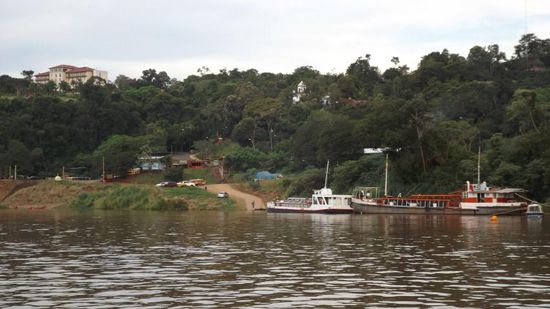 und fahren zum Drei-Länder-Eck. Hier überquert eine kleine Fähre stündlich den Rio Parana hinüber nach Argentinien (Auto ARS 80, Passagier ARS 30).