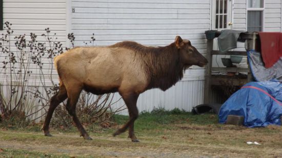 Vom New Found Gap Pass in den Smoky Mountains herunter ins Tal, quer durch Cherokee, wo Elks (Hirsche) in den Vorgärten grasen