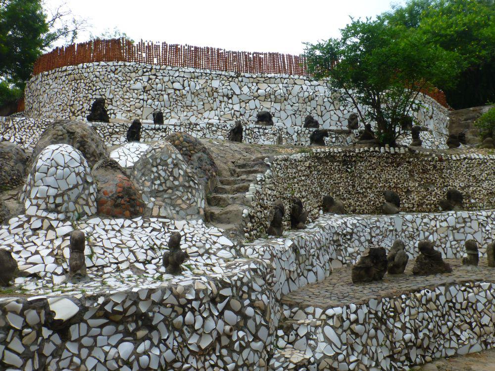 Es ist das Lebenswerk von Nek Chand, der 1965 heimlich mit dem Aufbau begann, mittlerweile ist das Gelände 20 ha groß und erinnert sehr stark an den Garten von Niki Saint Phalle in Italien oder den Gaudipark in Spanien. Faszinierend lassen wir uns hier treiben, mit immer wieder neuen Ausblicken, wenn man um die Ecke kommt.