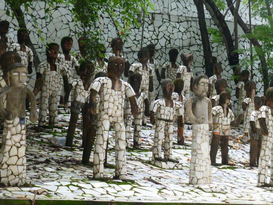 Schön dagegen sind die vielen recht gepflegten Parks, grüne Kinderspielplätze, ein großer Freizeitsee mit den unvermeidlichen Tretbooten - und die Top Attraktion, der Rock Garden, ein surreales Fantasieland aus Scherben, Leichtstoffröhren, Gefäßen, Tunnels, Schluchten, vielen Figuren aus Scherben, Armreifen und anderem recyceltem Material.