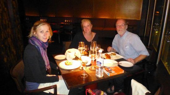 Zum Abschluss gönnen wir uns ein Dinner im 5-Sterne Hotel Le Meridien passenderweise im Restaurant Monsoon, an dessen Glasscheiben Wasser herunterläuft, um den für uns ausgebliebenen Monsun zu symbolisieren. Draußen ein Schild "No Weapons inside". Die Lobby im Innern des Hotels ist 20 Stockwerke hoch, innen fahren Glasfahrstühle hoch. Sehr sehr edel, natürlich auch das kreativ zubereitete Essen.