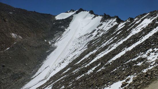 Am zweiten Tag wird es deutlich härter, wir sind mehr als 10 Stunden unterwegs und gehen zunächst extrem steil auf z.T. ausgesetzten Pfaden zum 4800 m hohen Stok-La hoch, da geht einem ordentlich die Puste aus, aber es geht doch insgesamt erstaunlich problemlos, die Höhendifferenz von 1500m zu überwinden. Nebenan sehen wir den Stok-Kangri, einen schroffenBerg mit 6123m., dessen Basecamp wir auch passieren.