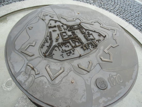 In den Boden der Fußgängerzone sind Platten mit Bemerkungen zur Stadtgeschichte eingelassen, leider nur in tschechisch