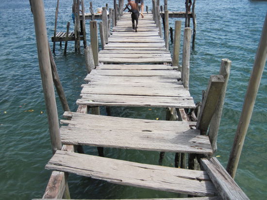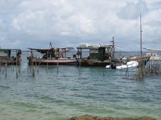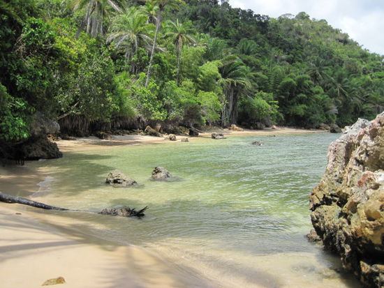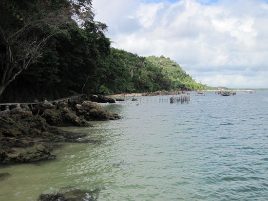 Gleich früh hatte die Bucht Porto da Cima unterhalb der Villa Bahia gerade den richtigen Wasserstand zum Schnorcheln. Nach dem guten Frühstück geht es am Strand entlang nach Gamboa Unterwegs kann man Angler und Fischer sehen, der Steg hat seine besten Tage schon hinter sich. Bei etwas höherem Tidenstand ist von dem Strand nichts mehr übrig, an dieser Stelle gibt es aber einen erhöhten Weg am Ufer.