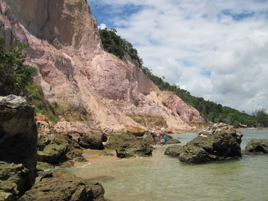 Mittlerweile kann man auch am Strand entlang gehen. Es kommen farbige Klippen in Sicht, die einen weichen, farbigen Schlamm liefern. Der wird für Körperbemalungen verwendet und ist auch als Bestandteil von Kosmetika begehrt.