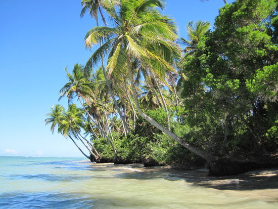 Beim Hinweg war der Rio Oritibe als kleines Rinnsal aus dem Landesinneren kaum aufgefallen. Jetzt beim Rückweg hat die auflaufende Flut schon einen recht hohen Stand und das Rinnsaal ist zu einem über einen Meter tiefen Fluß geworden.