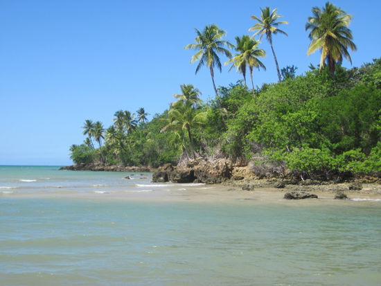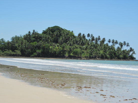 Der beim Rückweg wieder zu überquerende Rio Oritibe ist heute noch nicht ganz so tief (wenn man sich die richtige Stelle gemerkt hat ). Der Strand im weiteren Verlauf ist aber ganz schön schmal und wird von Wellen überspült.