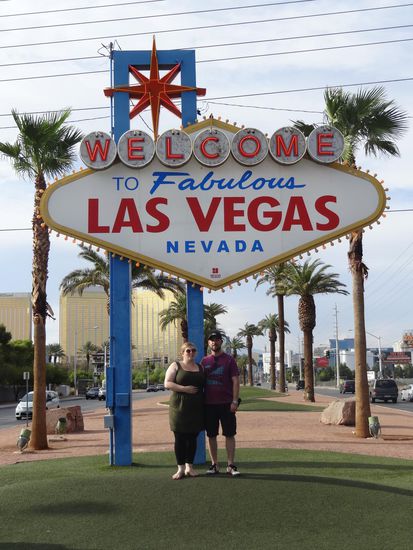 Bevor wir wieder zurück in die Stadt fuhren, machten wir noch einen kleinen Stopp bei Las Vegas' berühmten Willkommensschild. Es wurden extra einige Parkplätze eingerichtet, da so viele Menschen sich mit dem Schild fotografieren lassen möchten.