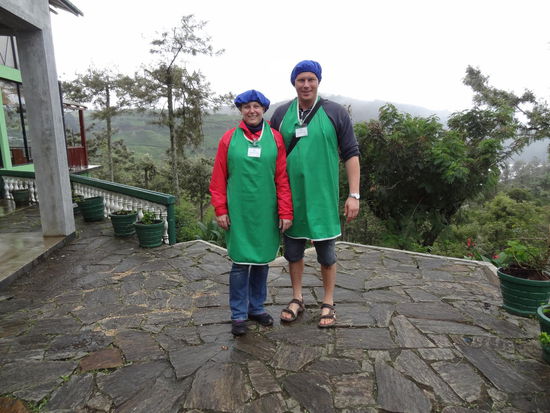 Wir haben uns einen Fahrer mit Auto organisiert. 9 Leute hätten reingepasst und wir waren nur zu dritt. Als erstes haben wir eine Teefabrik unterhalb von Nuwara Eliya angeschaut. Nachdem es seit 3 Wochen fast nur regnet, standen die Maschinen der Teefabrik still. Schade. 1200 Leute arbeiten in der Fabrik. Davon 800 auf den Plantagen.