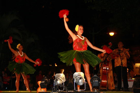 Die Touristen werden bei Ankunft mit Gesang und Hulatanz begrüßt.