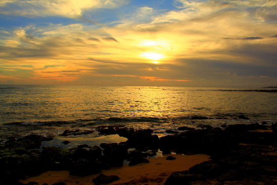 Am spouting Horn (siehe Foto) vorbei geht`s dann doch endlich an den Strand, wo wir den fast schon obligatorichen Sonnenuntergang genießen. Und wieder begrüßt uns eine Schildkröte an Land