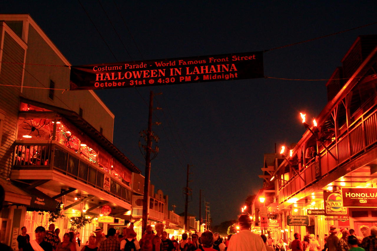 Endlich kommen die Rucksackfüller auch mal zum Einsatz. Nachdem wir uns unter den öffentlichen Duschen vom Sand befreit haben, fahren wir noch etwas weiter nach Lahaina, wo die von Hawaii größte Halloweenparty starten soll.
