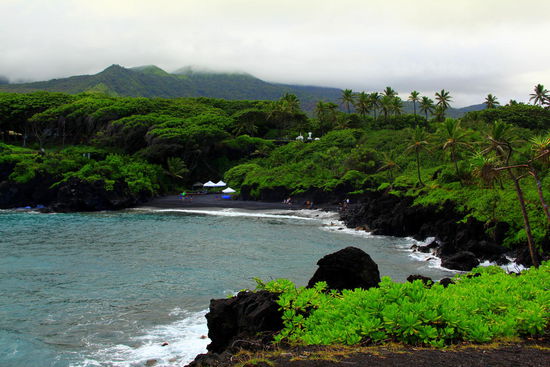 Auf Hawaii sind so einige schwarze Strände zu finden...Unseren obligatorischen Sand nehmen wir dann wohl von so einem nach Hause
