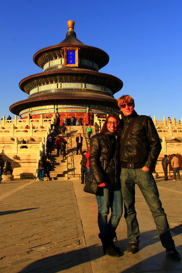 Am Eingang des Himmelstempels - eine Tempelanlage, in der die Kaiser der Ming- und Qing-Dynastien jedes Jahr für eine gute Ernte beteten.
