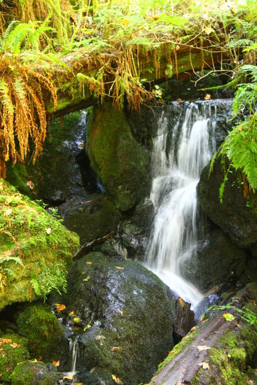 Immer tiefer geht es hinein in den Wald. Ab und an hört man es rascheln und wir verdrängen schnell die Warnungen vor den Mountain Lions, die überall angeschlagen sind. An kleinen Wasserfällen und umgestürzten Baumriesen vorbei geht es noch ein Stück weiter hinauf, bis der Weg sich sanft wieder den Hang hinabwindet.