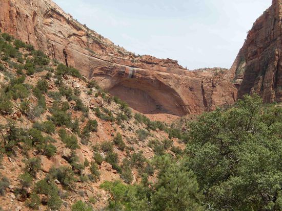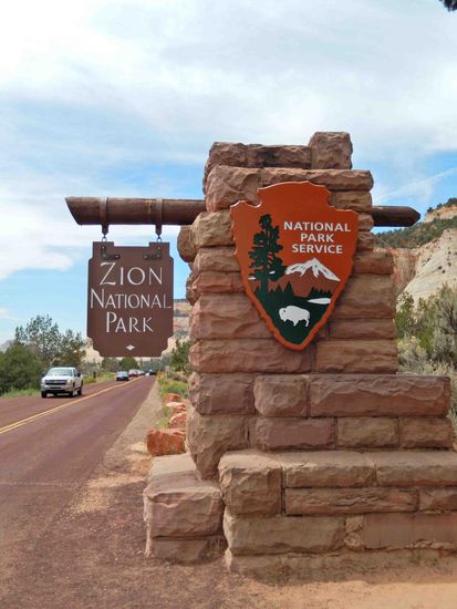 Nachdem sich der Himmel zu zog und wir am Horizont schon die ersten Blitze sahen machten wir uns auf den Weg zum Zion Nationalpark. D.h. eigentlich machten wir uns nicht explizit dorthin auf, sondern er lag sozusagen einfach auf dem Weg nach St. George. Dieser Nationalpark ist völlig anders als die anderen. Die Felsen sind teilweise ganz glatt geschliffen und bieten daher einen verschiedenen Anblick - mächtig, mit großen geschwungenen Bögen.