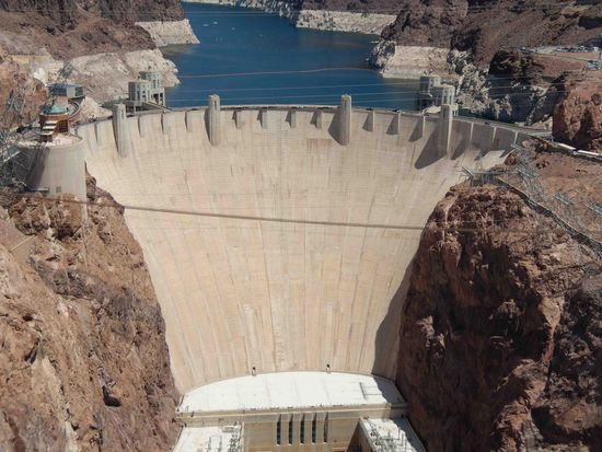 Am nächsten Tag sind wir zum Hooverdamm gefahren. Es war dort brüllend heiß. Die Steine reflektierten die Sonnenstrahlen und so war es sehr anstrengend über den Staudamm zu gehen und später dann noch auf eine Brücke hoch zu steigen, von der aus man einen genialen Überblick hatte.