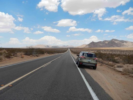 Die Luft im Nationalpark war zwar sehr warm aber noch angenehm. Dies sollte sich sehr schnell ändern! Wir fuhren nun rund 200 KM durch die Wüste, schnurgerade Straße, kaum andere Autos. Die Temperaturanzeige im Wagen zeigte eine Außentemperatur von 110 Grad Fahrenheit, was ca. 40 Grad Celsius entspricht. Wir wollten nicht mehr aussteigen.