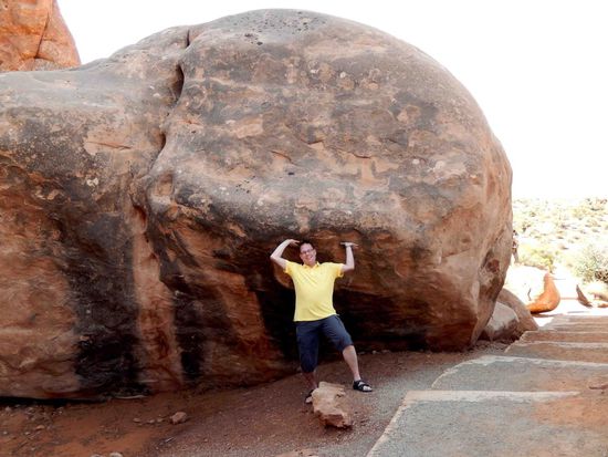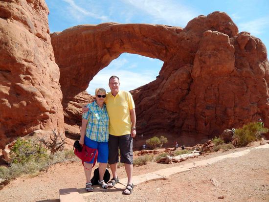 Der Name "Arches" bedeutet Bögen und genau die sind die absolute Sehenswürdigkeit. Aber auch alle anderen Gebirgsformationen sind unbeschreiblich. Teilweise stehen einzelne Felsen wie im Monument Valley, dann wieder richtige Wände aus Stein - viele Meter hoch aber nur wenige breit. Man weiß gar nicht wohin man zuerst sehen soll. Leider gibt dies ein Foto nicht annähernd wieder, aber wir haben es natürlich trotzdem vielfach versucht