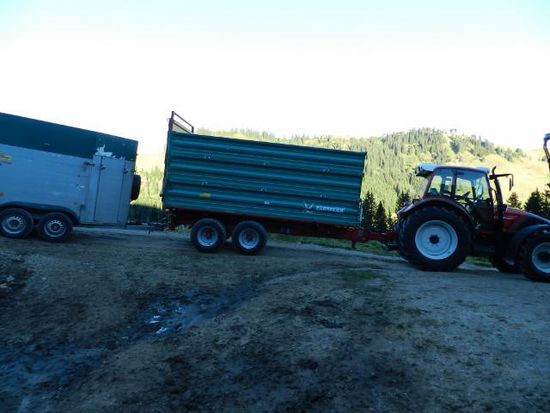 Ein letztes Mal klingelt der Wecker. Auf Steh´n Welt, 25 Kühe warten schon ganz sehnsüchtig auf uns. Extra langsam geht es heut zu Gange und keiner will so richtig begreifen, dass nach 105 Tagen, die Almsaison heute vorbei ist. Leider haben wir selbst keinen traditionellen Abtrieb, aber ganz ohne Schmuck kommen uns die Kühe auch wenn sie mim Hänger den Heimweg antreten nicht davon. Und so griegt jede ein Tannenzweig an Ihre Glocke gesteckt und auch der LKW wird festlich mit Zweigen dekoriert. Ein neues Gefährt, dass sich Hannes erst im Mai zugelegt hat mit Doppelhänger pfeifft um kurz nach 8 Uhr den Berg rauf. Franzl, Hannes Vater sitzt ganz stolz im Führerhaus. Während dem Verladen kommt auch Sepp mit Frau, Mutter und Kindern. Es ist noch kalt und die Wiesen sind mit einem glitzernden Reif überzogen. Und dann sind sie weg. Die Kühe, Hannes, Franz. Und auch wir machen uns bewaffnet mit Stecken, geschmückten Kühen und einem Schnappserl in der Tasche auf den Weg. 16 Kühe müssen den Berg runter und drüben wieder rauf. Durch den Ehrenbachgraben geht die Tour, an der Baustelle vorbei und durch den nächsten verwunschen Wald. Sepp hatte keine Zeit mehr den Weg vorher wegen umgestürzter Bäume, Erdrutschen oder sonstigen Hindernissen abzulaufen. Vor einem Koloss von Fichte endet die Reise. Rechts steil bergab, Links steil bergauf und in der Mitte ein rießen Baum vom letzten Sturm entwurzelt. Schei... 16 vor sich hintrottende Kühe müssen stoppen. Die hinteren schieben die vorderen an, der Weg ist nicht mal so breit, dass 2 nebeneinander passen und da kugelts auch schon die erste den Hang runter, gefolgt von der zweiten. Scheißeeeeee. Gott ist mit uns. Nix passiert.. Sie kraxeln wieder auf. Was tun, kein Fichtenmoped im Gepäck, hat Sepps Mutter im Auto und die is schon aufm Heimweg. Nachdenken.. Ruhe bewaren.. Es gibt noch einen anderen Trail ein Stück weiter oben, aber dafür müssen wir zurück.. Ewwwiii, gehtss, kiiiieemt.. die letzten drehen langsam um, verstehn allerdings nicht warum und so endet der Notfall-plan an der nächsten Abzweigung. . Kühe sind nicht blöd, die merken sich den Weg und eine Alternative gibt es für die nicht.. Also drehn auch die letzten wieder Richtung Baumstamm um. In der zwischenzeit ist es wohl einigen vor dem Hindernis zu öde geworden, kein grün zum Fressen, kein Platz. Die erste manövriert 500 kg Kampfgewicht über die Fichte. Vorderhaxn, kleiner Sprung, Hinterhaxn und drüber. Geht eine gehn sie alle. Und so hüpfen ganz langsam die eine mutiger die andere vorsichtiger 16 Kühe nach und nach über den Stamm. Geschafft. Puh, Schweiß abwischen und weiter gehts. Nach ca. 3 Stunden an der Seidelalm vorbei, wo uns die Wirtin ein Schnäppsen in die Hand drückt, vorbei an 3 testorongesteuerten Bullen sind wir da. Eine Bilderbuch-Weide inkl. Haus wie vom Bergdoktor lässt uns mal wieder alle Anstrengungen vergessen. Die Kühe gehn zum Grasen, dürfen noch bis Ende Okt. draussen bleiben bevor sie über den Winter in den Stall ziehn. Wir haben Gänsepickel. Es gibt Nudel mit Soß, was zu trinken und dann müssen wir uns schon wieder verabschieden. Von Sepp, seiner Frau, den Kühen, den Kindern, von Hans-Peter unserm Nachbar. Die Mutter fährt uns zurück. Den Nachmittag bringen wir noch den Stall auf vordermann. Kärchern, kehren, putzen usw. und auch unsere Hütte müsste so langsam mal ausgeräumt werden. Um 22 Uhr fallen wir wie die letzten Wochen totmüde ins Bett. Die erste Nacht allein auf der Griesalm wartet auf uns.