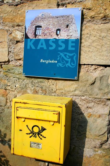 Auf dem Burggelände befindet sich ein Museum über Töpferei und Hausrat aus dem Mittelalter sowie eine Gaststätte. Der Turm kann zu den Öffnungszeiten bestiegen werden. Von ihm aus sind die anderen beiden Burgen zu sehen. Weiterhin befinden sich ein in Betrieb befindlicher Postkasten und ein Brunnen auf dem Gelände.