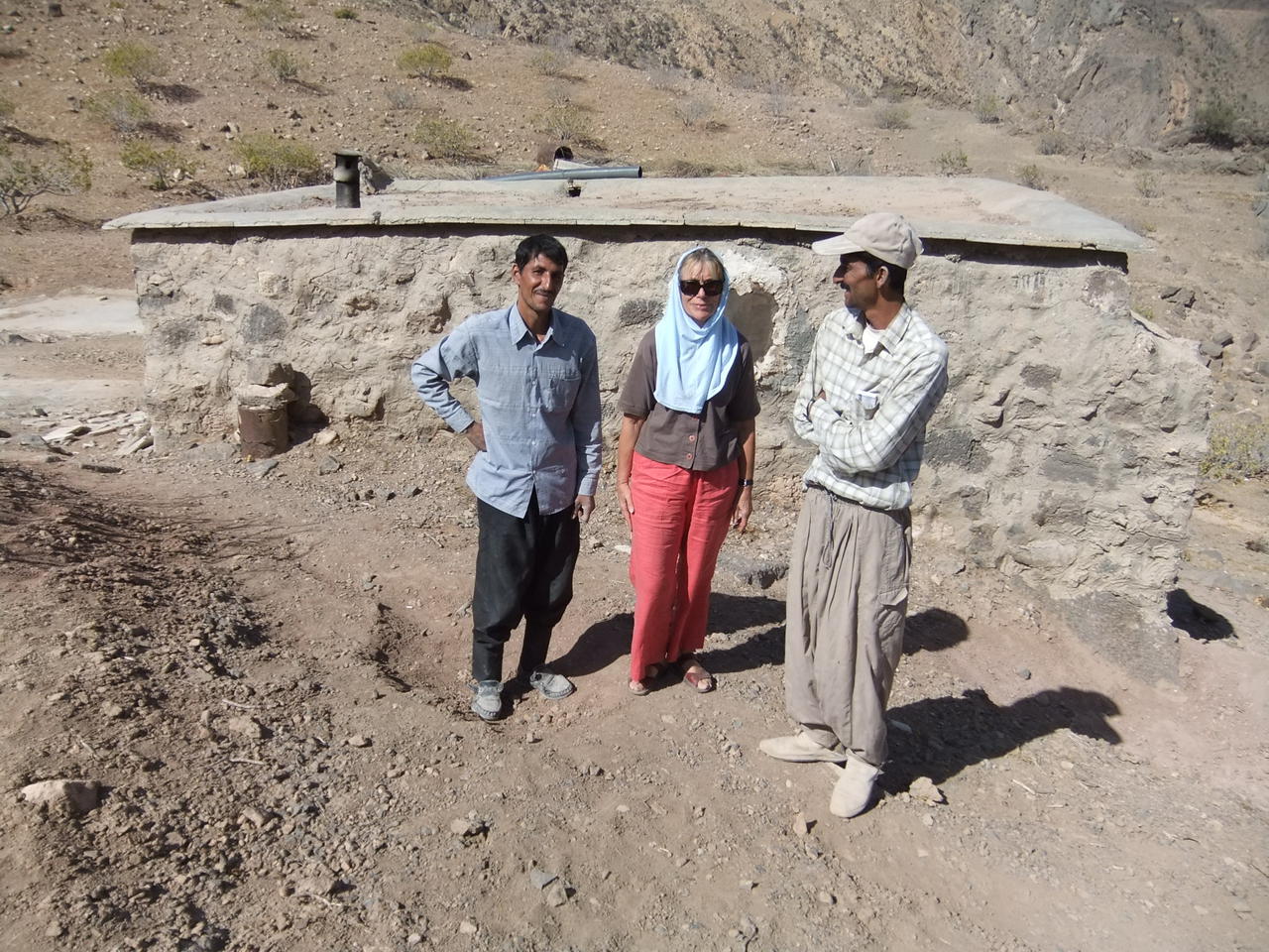 Nach einer recht kühlen Nacht wollten wir gleich Richtung Shiraz starten. Plötzlich hörten wir Motorengeräusche. Zwei Iraner, die in der Pistazienplantage arbeiten wollten kamen mit einem Leichtmotorrad an. Sie näherten uns nur langsam. Offenbar waren sie genau wie wir erstaunt uns in einer so verlassenen Gegend zu begegnen. Während meine Frau das Frühstück zubereitete befestigte ich im Auto die Armaturenbrettverkleidung und wollte den Motor schon einmal versuchsweise starten. Vergeblich! Nach etlichen erfolglosen Startversuchen packten wir alle unsere Sachen ein und begaben uns zu Fuß zur 5 km entfernten Hauptstraße. Dort konnten wir nach längerer Zeit einen LkW, der in Richtung Neiriz fuhr stoppen. Er brachte uns in die uns bereits bekannte Werkstatt. Nach einer kurzen Schilderung mit Händen und Füssen wusste der Mechaniker sofort was zu tun war. Mit seinem Auto fuhren wir zurück in die Pistazienplantage wo unser Auto einsam und verlassen stand. Mit ein paar Handgriffen lief der Automotor plötzlich. Ich hatte vergessen die Elektronik zurückzusetzen. Bevor wir unsere Fahrt fortsetzten besuchten wir die beiden Pistazienplantagenarbeiter in ihrer Behausung die an einem Hang in einer Vertiefung lag. Sie luden uns zum Tee ein und wir verabschiedeten uns.