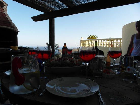 Nach einer unglaublich erholsamen Nacht, in der wir alle bestens geschlafen haben (O-Ton Steffi: "Ich habe seit drei Jahren nicht so gut geschlafen wie heute"), startet jeder für sich, nachdem er ausgeschlafen hat, in den Tag. Zum Frühstück gibt es bestes Müsli mit Wassermelone, Kiwi, Nektarinen, Apfel, Papaya, Kirschen, Ananas, Pfirsich und griechischem Joghurt sowie richtig leckerem Kaffee. Lena und Ivi beschließen einen Spaziergang zum Strand zu machen und schreiben uns irgendwann eine vielversprechende SMS, die uns mit einem wunderschönen Strand, bequemen Liegen, relativ wenigen Touristen sowie einer Strandbar mit Cocktails sofort lockt. Wir Anderen packen unsere Strandtaschen und folgen sofort dem Lockruf.