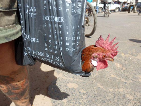 Auf dem Markt hat Kaba dann eine Hahn für einen alten Mann auf der Lamin Lodge erworben.