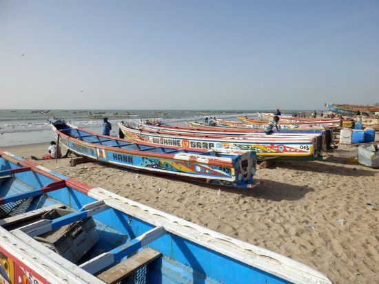 Viele bunte, nett anzuschauende Boote liegen hier. Es ist gerade richtig stürmisch, deshalb sind kaum Fischer auf dem Wasser und die Händler am Strand haben kaum etwas zu tun.