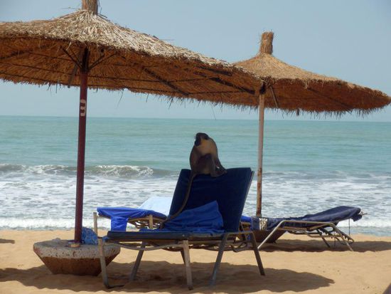Selbst am Strand rennen sie einem ständig über den Weg und man muss aufpassen, dass sie einem nicht die Bananen klauen.