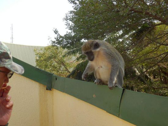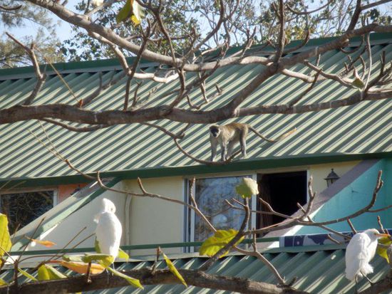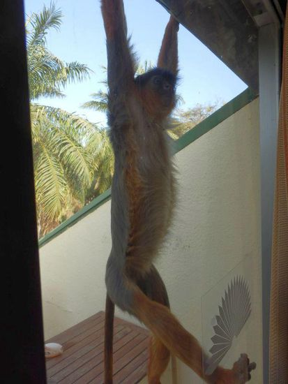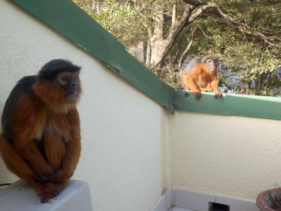 Wir haben den einen Morgen nicht schlecht gestaunt, als wir durch das Poltern der über das Blechdach rennenden Affen geweckt werden und dann auf unseren Balkon schauen.