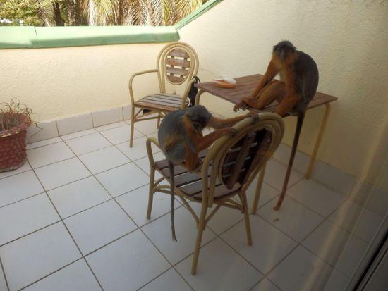 Fast von jedem Zimmer aus kann man Affen beim Spielen und Klettern beobachten.