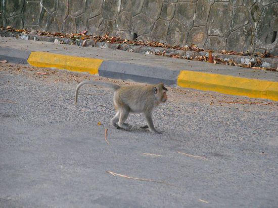 Am späten Nachmittag laufen wir noch mal Richtung Kep Beach. Ab ca. 16 h kommen da die Affen aus dem Urwald bis an die Straße.