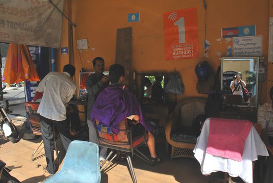 Kai begibt sich mutig in die Hände eines Straßenfriseurs.