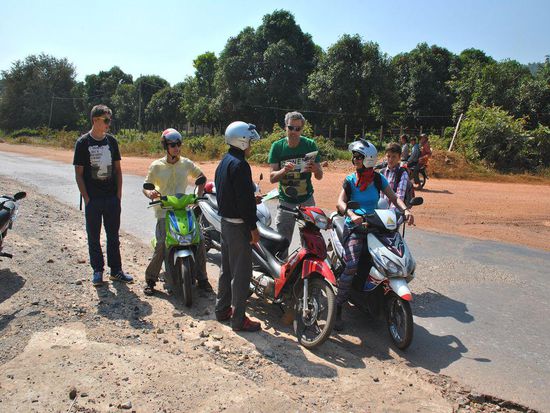 Beim Frühstück sind wir noch unentschlossen wie wir den Tag verbringen wollen. Kommen ins Gespräch mit einer Familie aus Zürich, Jürg und Regina mit ihren Söhnen Dimitri und Gabriel. Die planen eine Moped-Tour und kurz entschlossen fragen wir, ob wir uns anschließen dürfen. In einer Gruppe schwinden bei mir die Bedenken vor den potentiellen Gefahren, die Moped fahren mit sich bringen könnte.