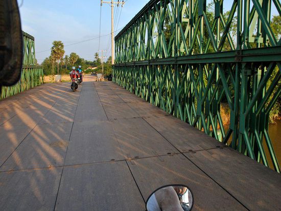 Nun wollen wir zurück, aber nicht die gleiche Straße. Irgendjemand hat etwas erzählt, es gäbe eine Stelle über den Fluß, wo eine Fähre auch Mopeds transportiert. Ich sage jetzt nur: