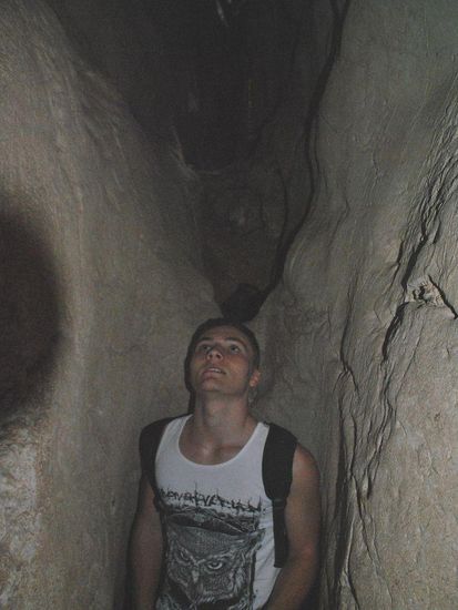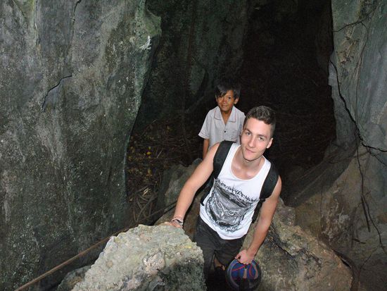 Auf einmal kommen wir an eine Stelle, wo unser kleiner Guide wieder mal zu einem winzigen Loch im Felsen klettert und uns ruft: "this way"...