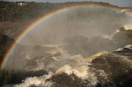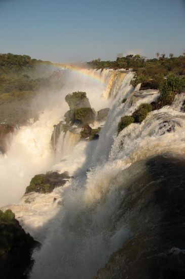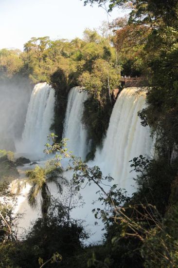 Hier fließt der Rio Iguacù über ein Basaltbecken und verbindet sich mit dem Rio Parana. Dort, wo der Lawafluß endet, stürzen nun tausende Kubikmeter Wasser in der Sekunde ca. 80 m tief in ein Sedimentbecken. Der Iguacù teilt sich in zahlreiche Kanäle mit verdeckten Riffen, Felsen und Inseln. Ganz unterschiedliche Kaskaden bilden nun die berühmten "Cataratas"(Wasserfälle) insgesamt sind sie zusammen ca. zwei Kilometer lang.